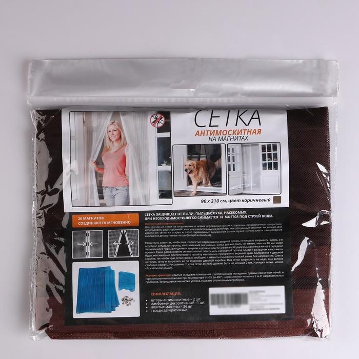 Сетка антимоскитная для дверей, 90 × 210 см, на магнитах, цвет коричневый