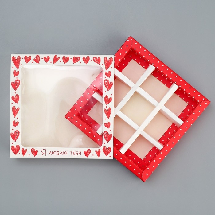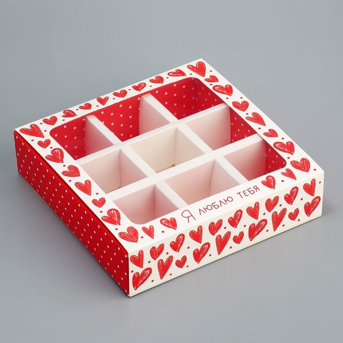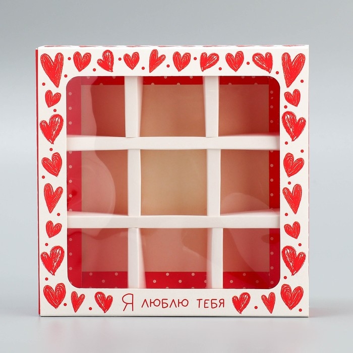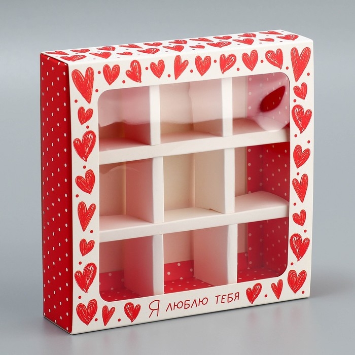 Коробка для конфет, кондитерская упаковка, 9 ячеек, «Я люблю тебя», сердечки, 14.5 х 14.5 х 3.5 см