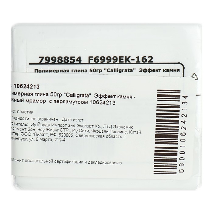 Полимерная глина Calligrata "Снежный мрамор с блестками перламутром", белый, 50гр