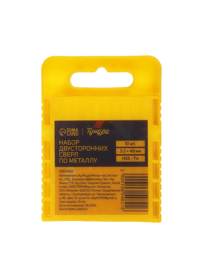 Набор двусторонних сверл по металлу ТУНДРА, HSS-Tin, 3.2 х 49 мм, 10 шт.