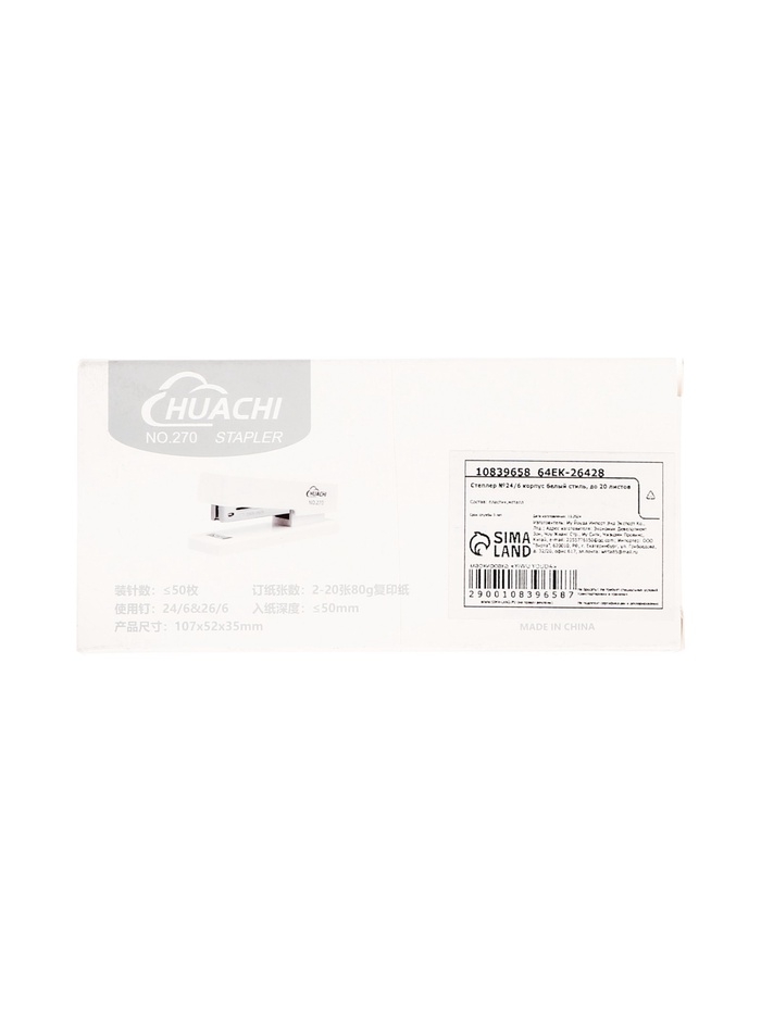 Степлер №24/6 корпус белый стиль, до 20 листов