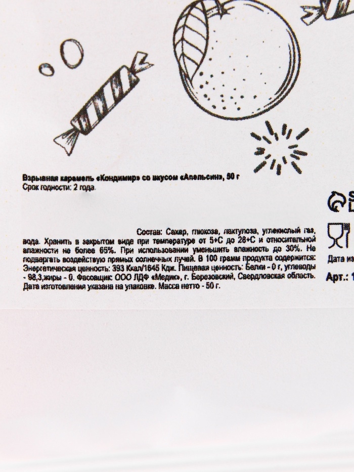Взрывная карамель со вкусом апельсина "Кондимир",50г