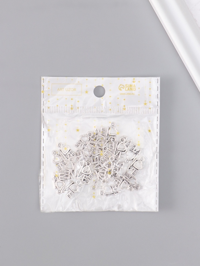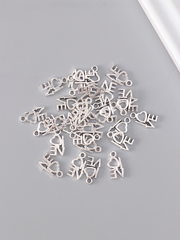 Декор для творчества металл "Love с сердечком" серебро набор 30 шт 1,4х0,8 см