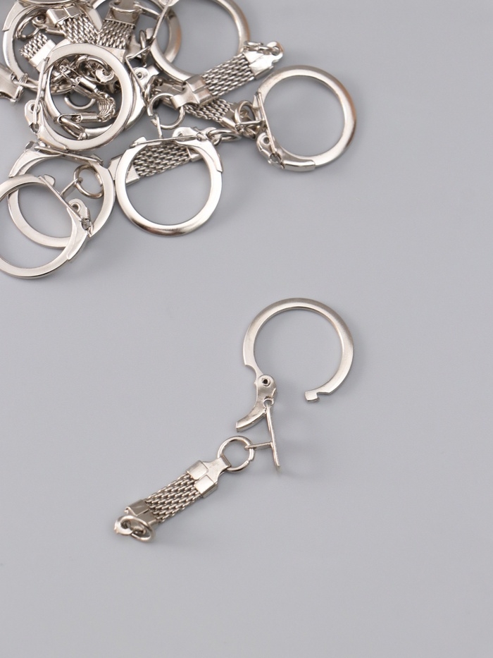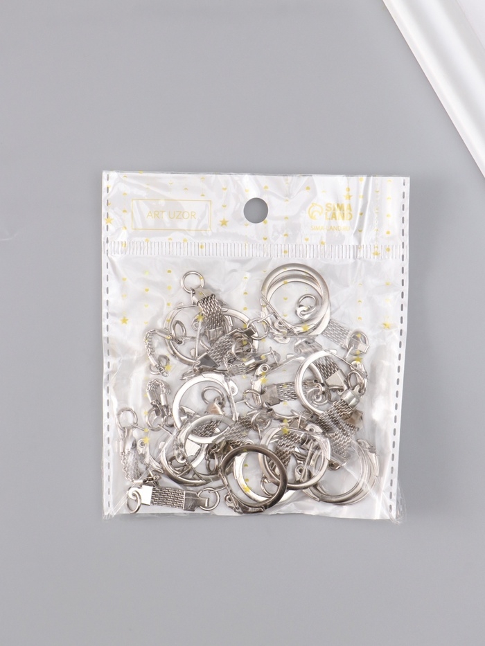 Основа для брелока карабин металл с плоской цепочкой серебро набор 15 шт 5,8х2,2 см