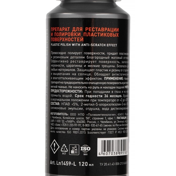 Полироль-реставратор пластика LAVR профессиональная формула, 120 мл, флакон Ln1459