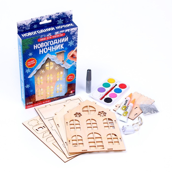 С набором для творчества «Новогодний ночник» у вас получится создать стильный светильник. Для этого в наборе вы найдёте всё необходимое.