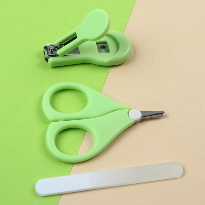 Детский маникюрный набор, 3 предмета: ножницы, пилка, книпсер, от 0 мес., цвет розовый