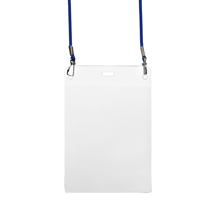 Прозрачный вертикальный бейдж с внешними размерами 153×105 мм и внутренними 123×95 мм. Выполнен из прочного пластика, устойчивого к заломам и деформации. Оснащен надёжным синим шнурком длиной 40 см, который комфортно сидит на шее и не перекручивается. Идеальное решение для офисов, конференций, выставок и других мероприятий. Быстрая смена вкладышей благодаря удобному боковому вырезу.