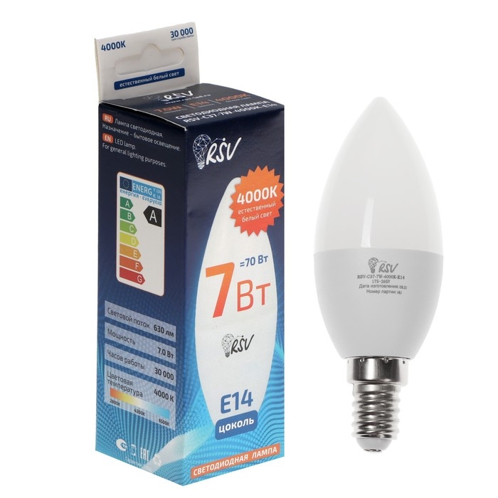 Светодиодная лампа RSV-C37-7W-4000K-E14