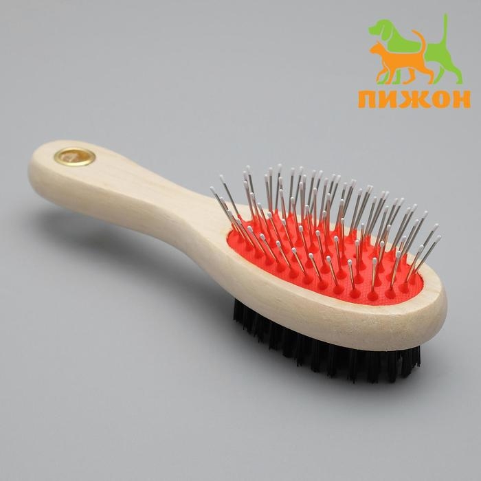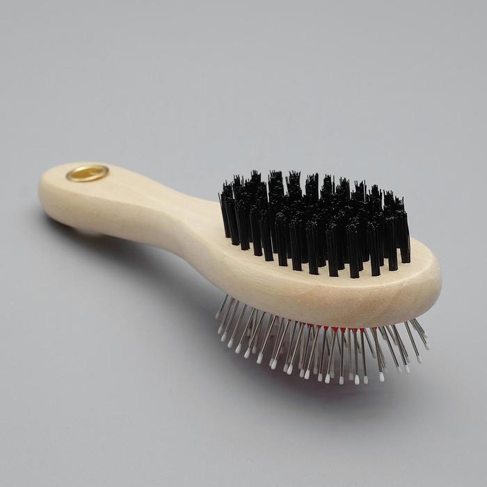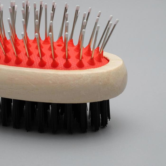 Двусторонняя щётка-расческа с деревянной ручкой малая, 5 х 17 см