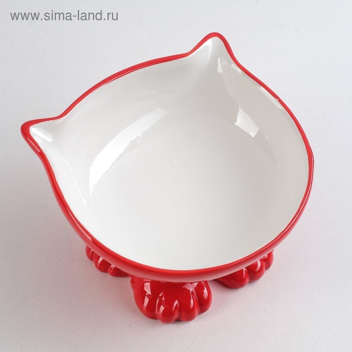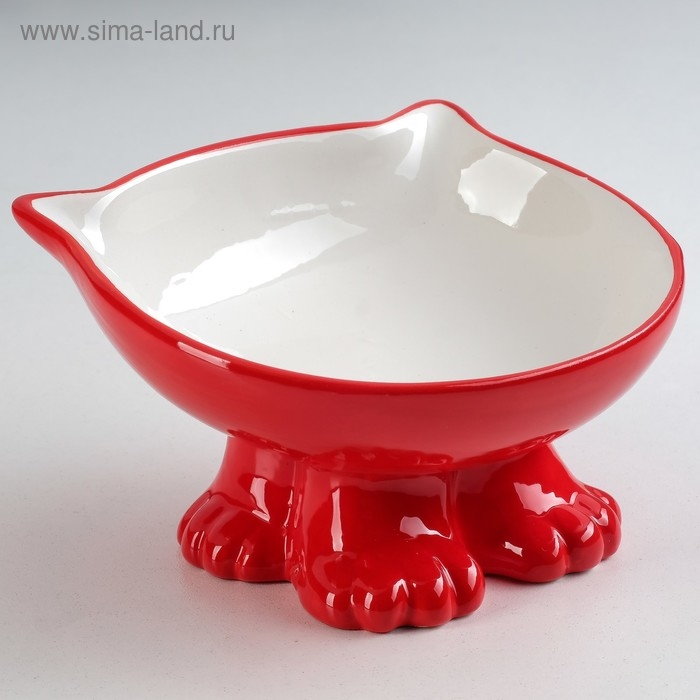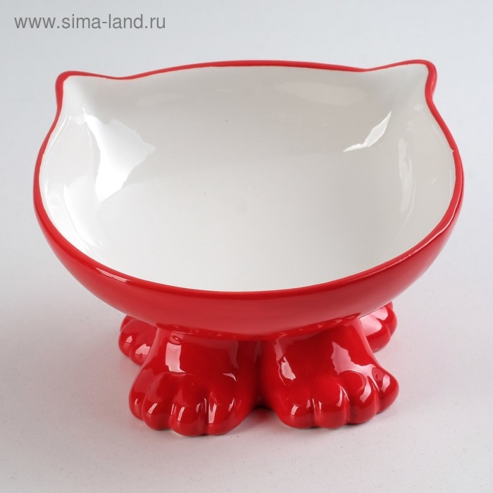 Миска керамическая "Киса" на подставке-лапках 200 мл, 13 х 12 х 8 см, красная