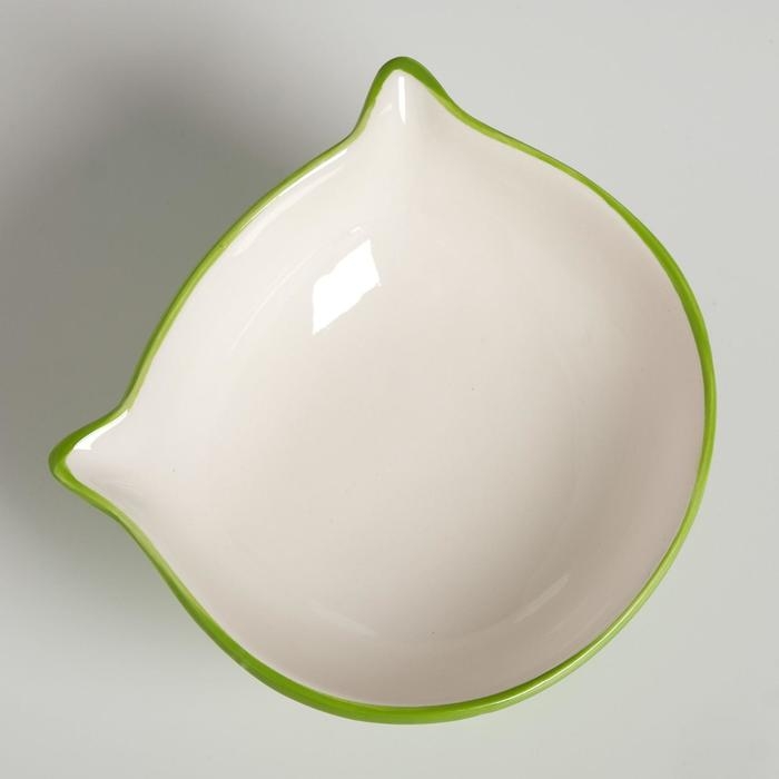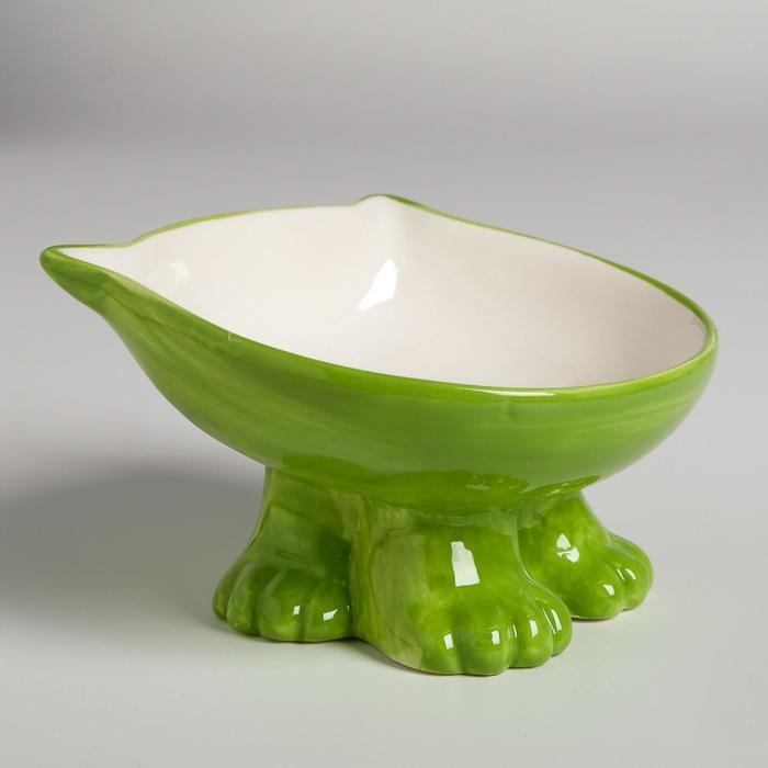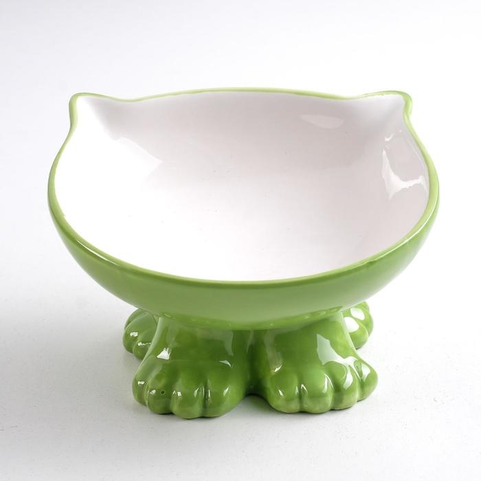Миска керамическая "Киса" на подставке-лапках 200 мл 13 х 12 х 8 см, зелёная/белая