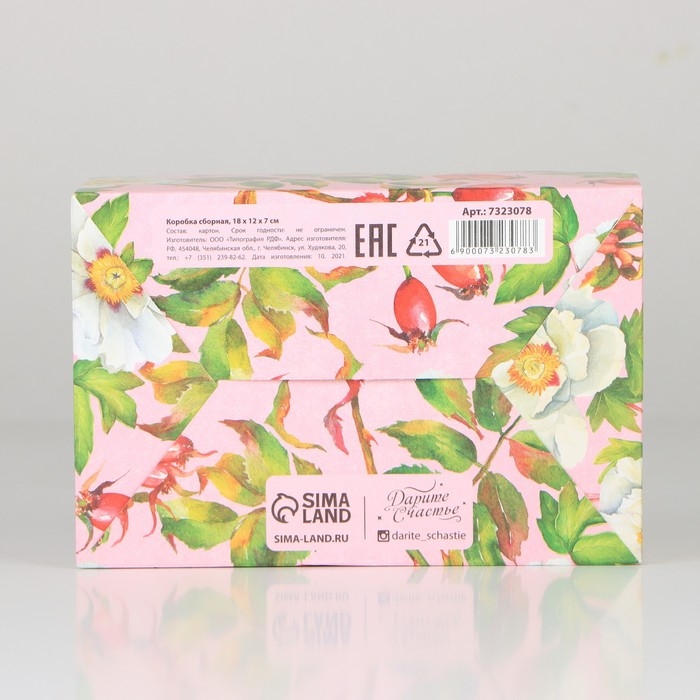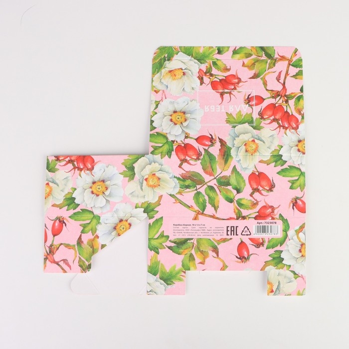 Коробка подарочная сборная, упаковка, «Цветы», 18 х 12 х 8 см