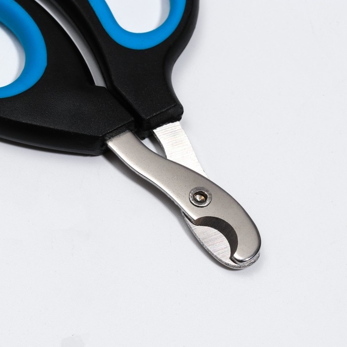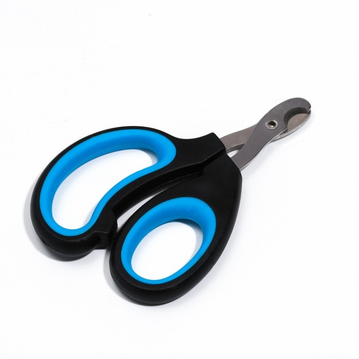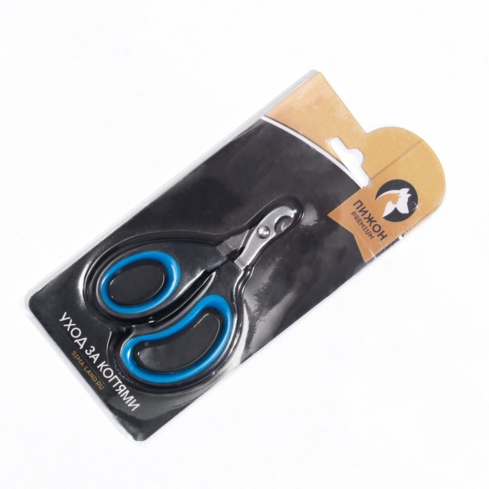 Ножницы-когтерезы "Пижон" Premium с эргономичной ручкой, чёрно-голубые