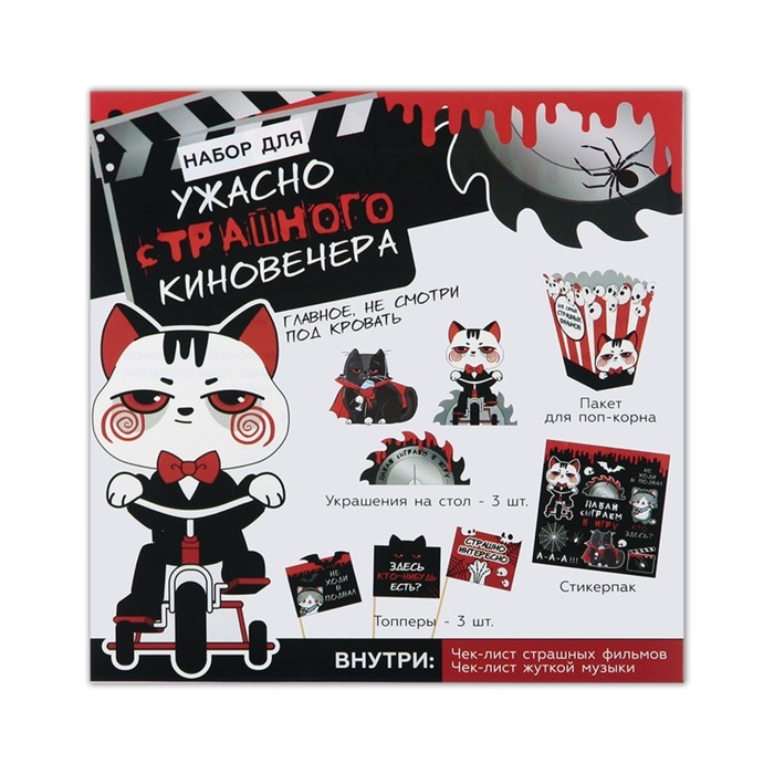 Набор для проведения праздника. С помощью данного набора вы можете с легкостью устроить продуманный до мелочей хэллоуин. Его можно взять с собой в гости и порадовать интересными играми друзей.