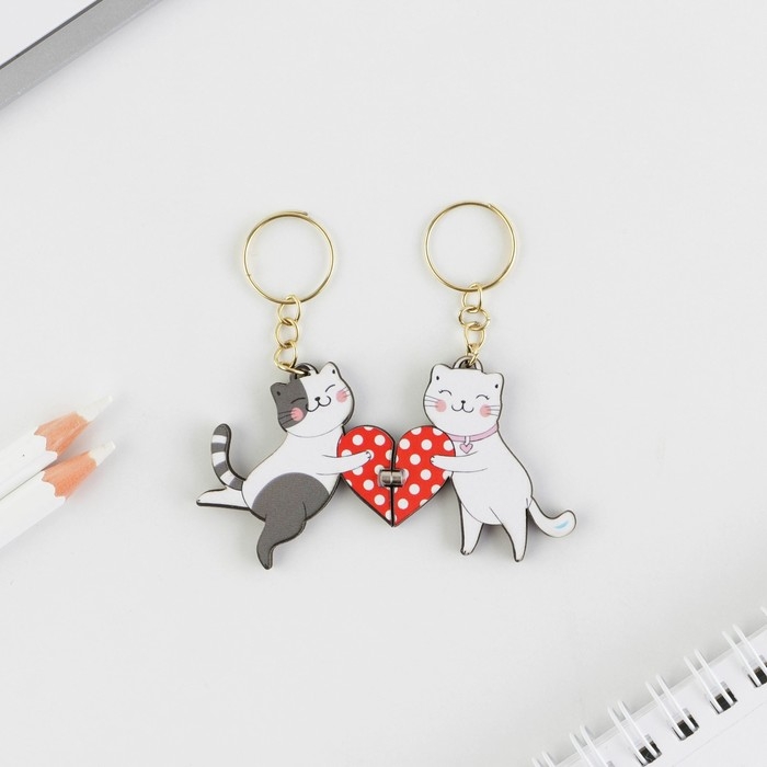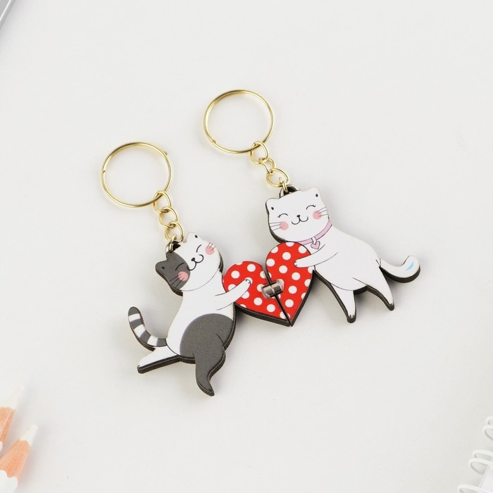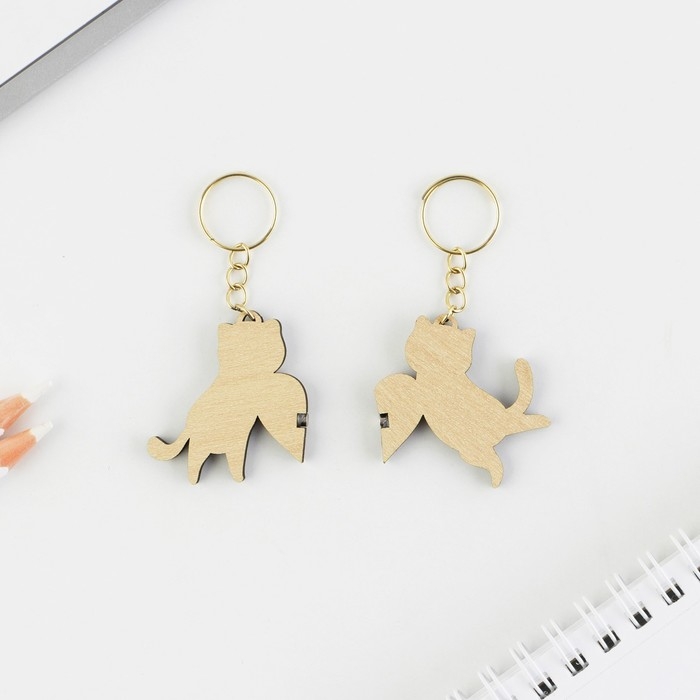 Брелок для ключей парный «Заяц и кот», деревянный, 5,6 х 3,2