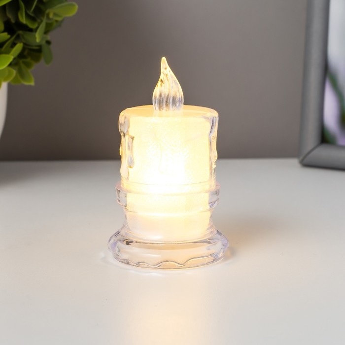 Ночник "Морозная свеча" LED от батареек 3хAG10 белый 4,5х4,5х8 см