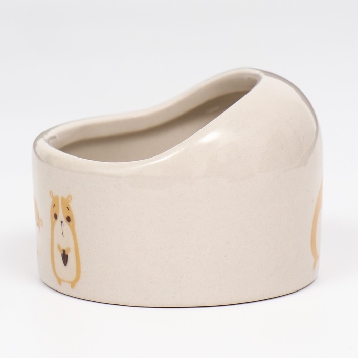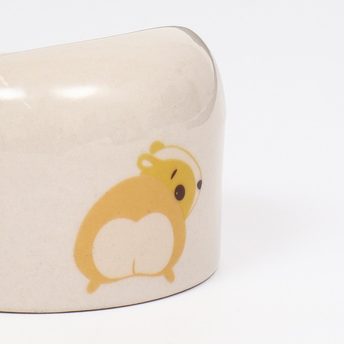 Миска керамическая "Хомяк и еда" 65мл, 6,3 х 4,5 см, бежевая с принтом