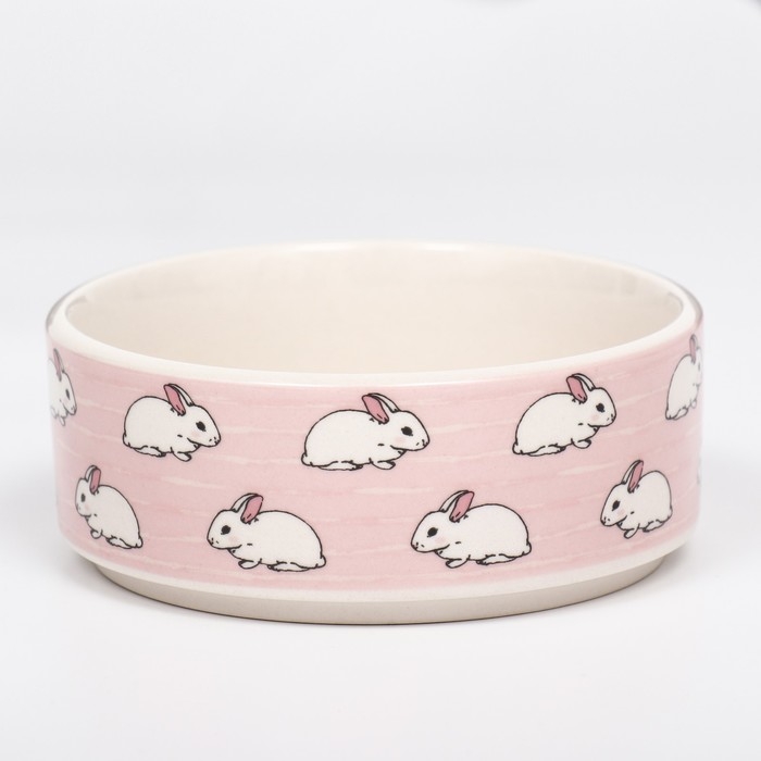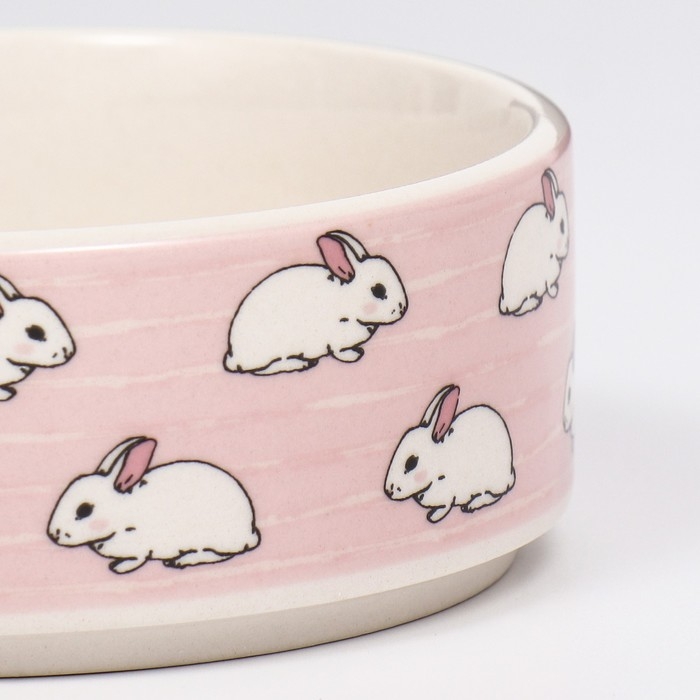 Миска керамическая "Кролики" 200мл, 10,5 х 4 см, розовая