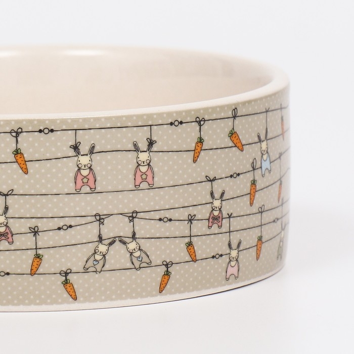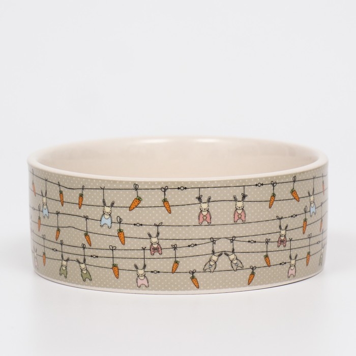 Миска керамическая "Кроличьи игрушки" 300мл, 11,5 х 5 см, бело-серая