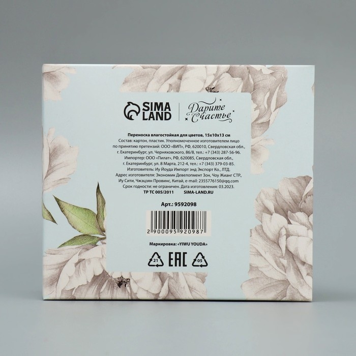 Переноска влагостойкая для цветов «Цветы», 15 х 10 х 13 см