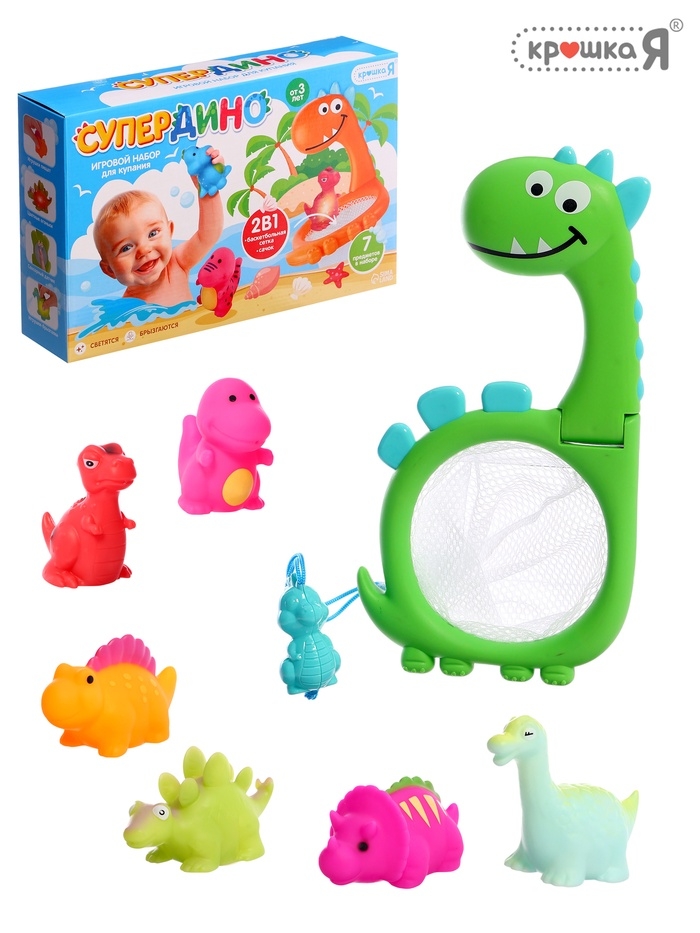Игровой набор для купания «Супер Дино», 7 игрушек в наборе, световые эффекты