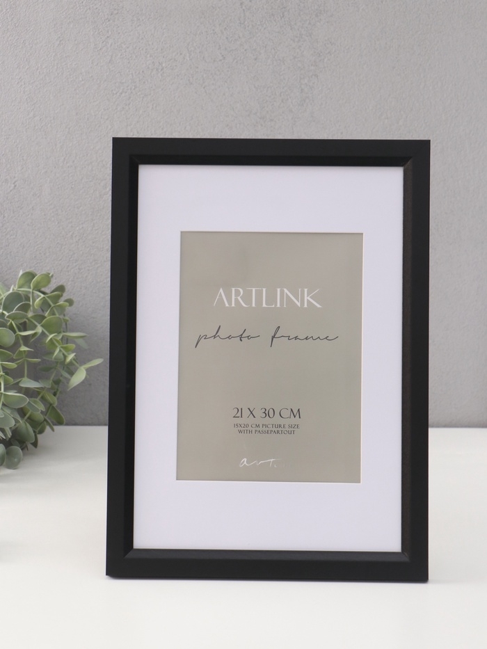 Фоторамка МДФ "Anna" 21х30 см, с паспарту (15х20 см), чёрный (пластиковый экран)