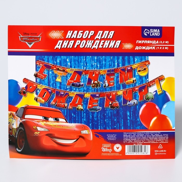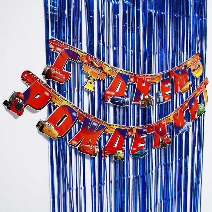 Набор для дня рождения: гирлянда (2,2 м), дождик синий (1х2 м), Тачки