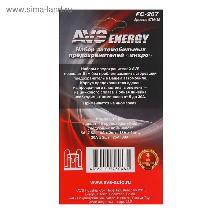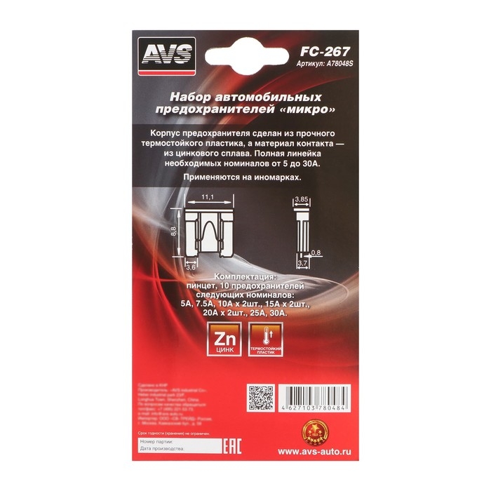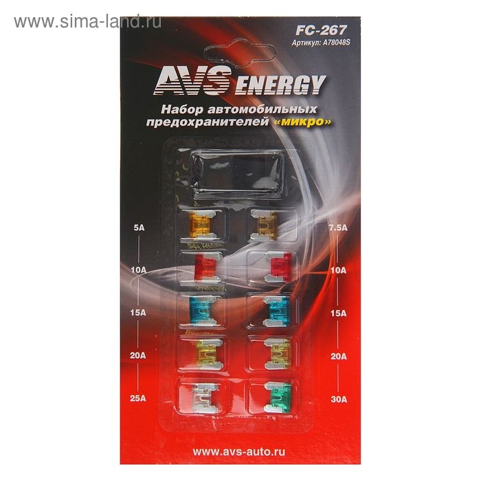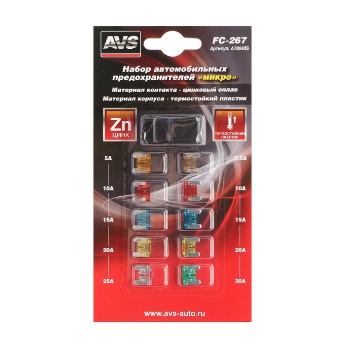 Предохранители AVS FC-267, "микро", 5-30 А, набор 10 шт