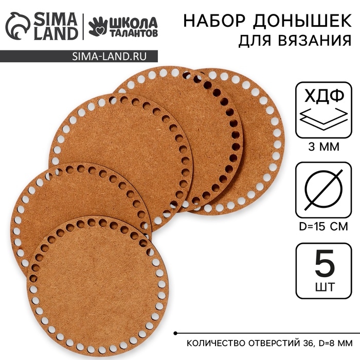 Набор донышек для вязания, круг 15 см, 5 шт, хдф 3 мм