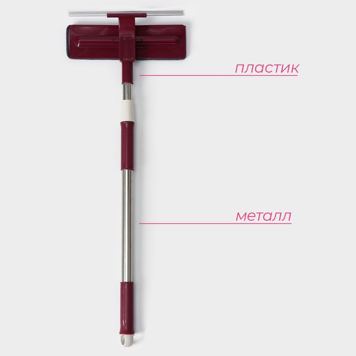 Окномойка с стальной ручкой и сгоном Raccoon, 25×17×105(148) см, 2 насадки из микрофибры