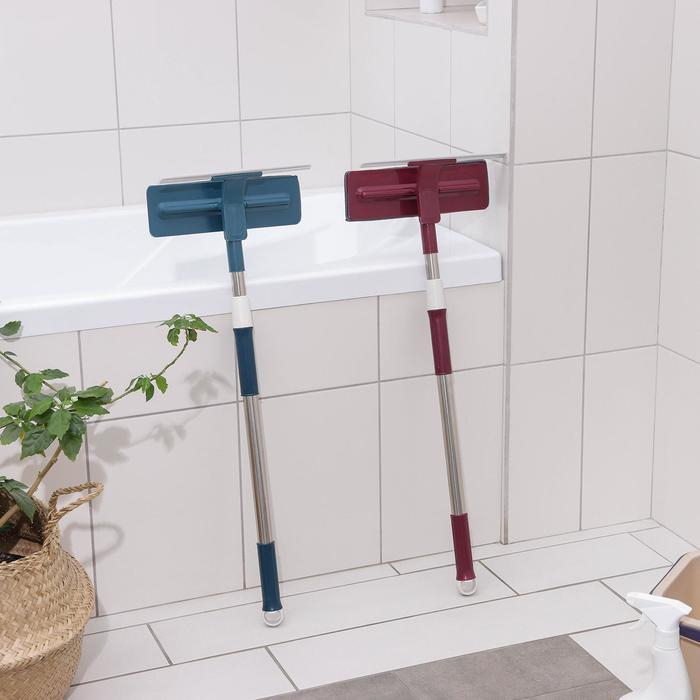 Щётка для окон Доляна, телескопическая ручка 49(75) см, водосгон 20 см, насадка поролон 20 см, цвет синий