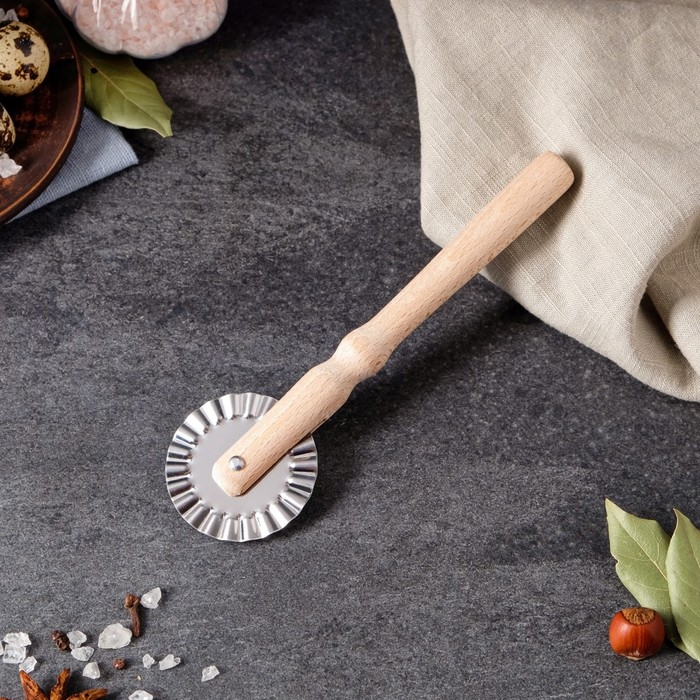 Нож для пиццы и теста Доляна «Классик», 18,5 см, коррозионностойкая сталь, ребристый, бежевый
