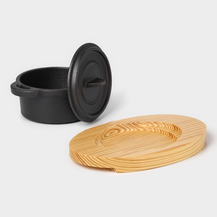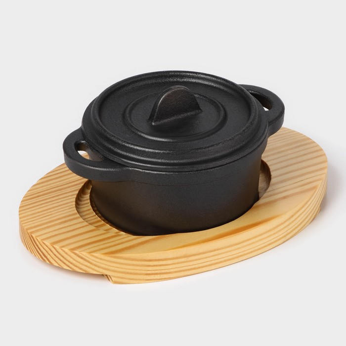 Кастрюля чугунная на подставке Volcano, 13×10×7,5 см, цвет чёрный