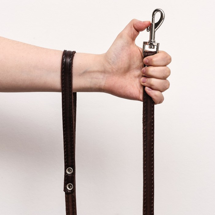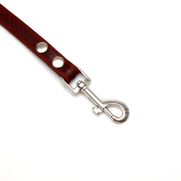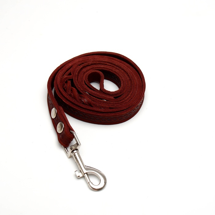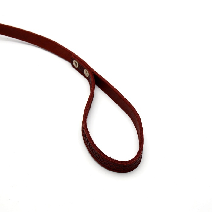 Поводок кожаный однослойный тиснёный, удлиненный, 2 м х 1,6 см коричневый