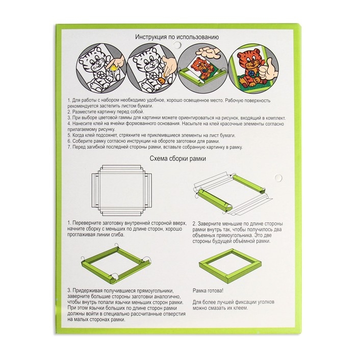 Готовую картину можно поместить в рамку, которая входит в набор и поставить на видное место, чтобы все оценили мастерство и творческий подход вашего ребёнка!