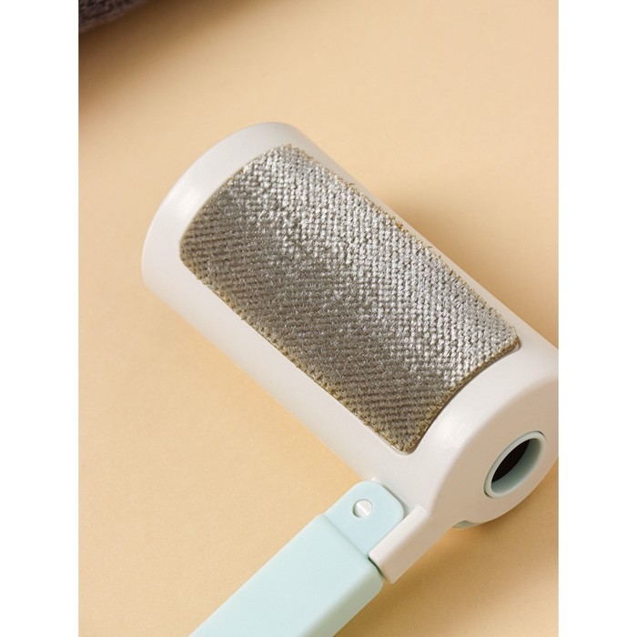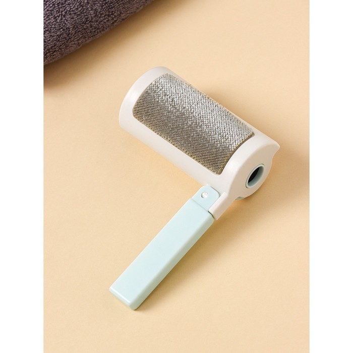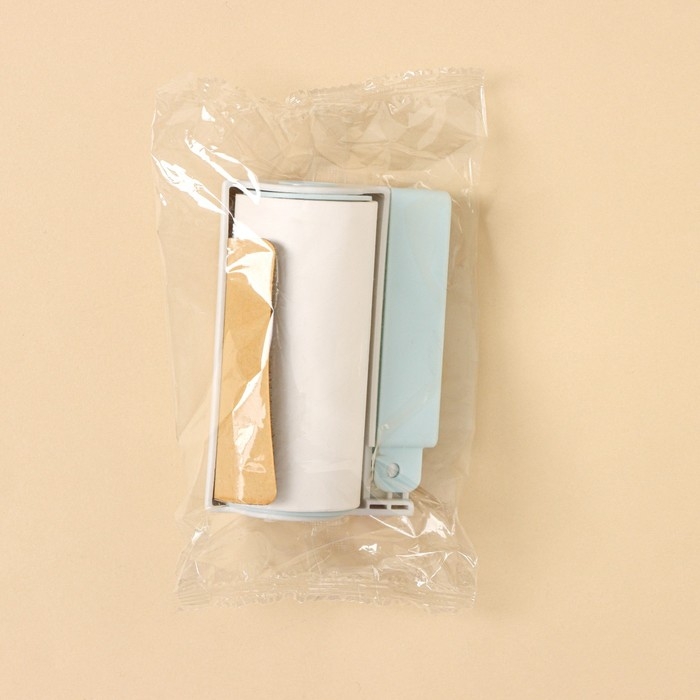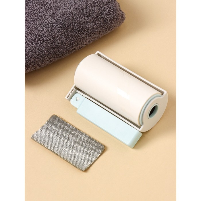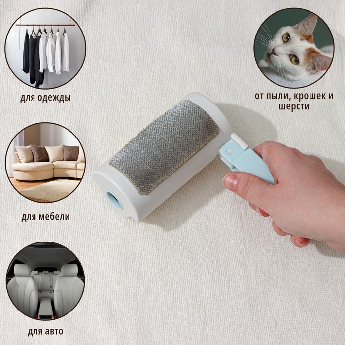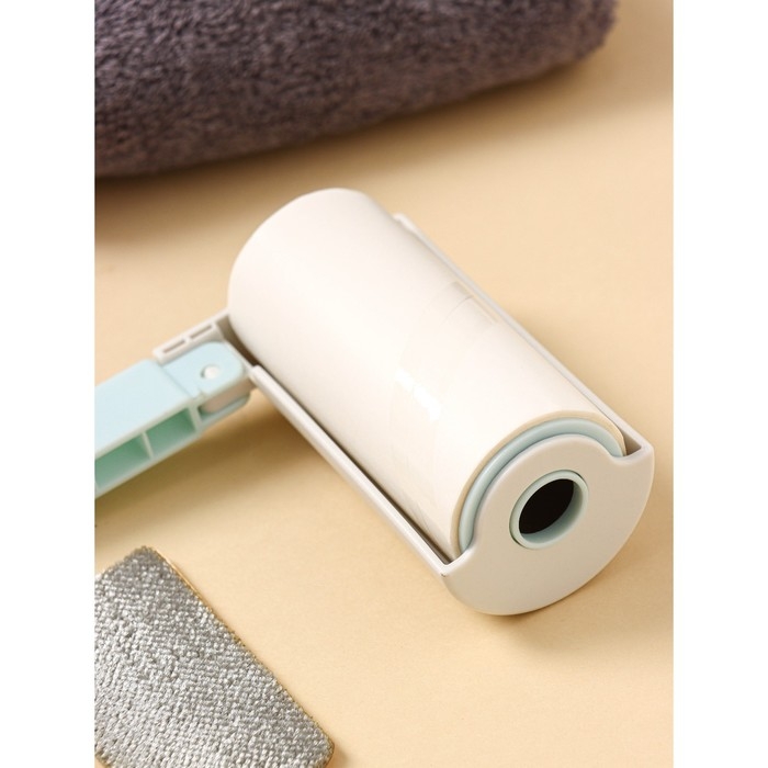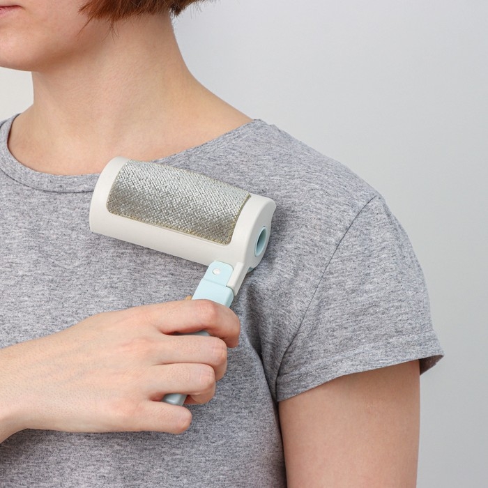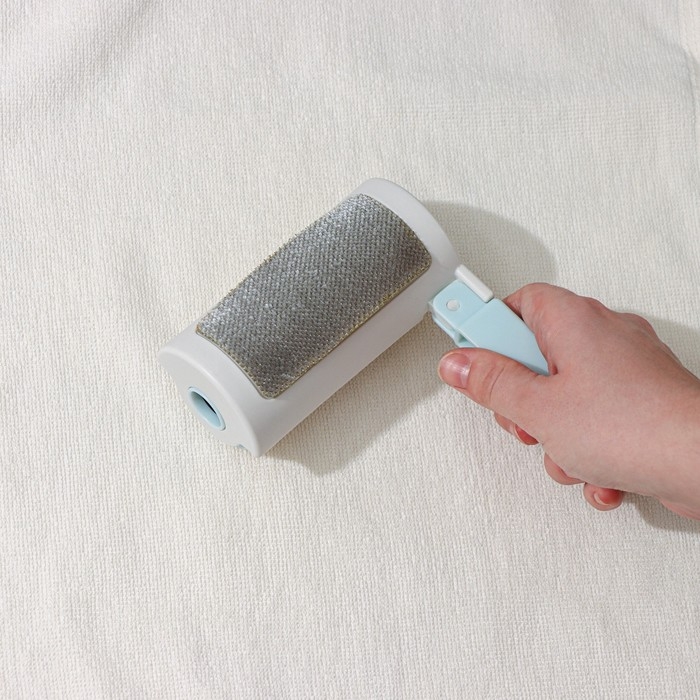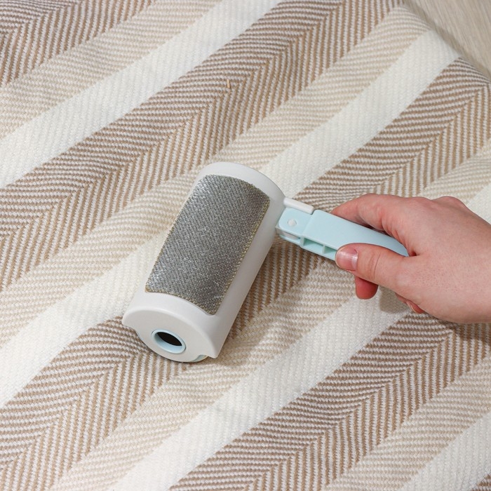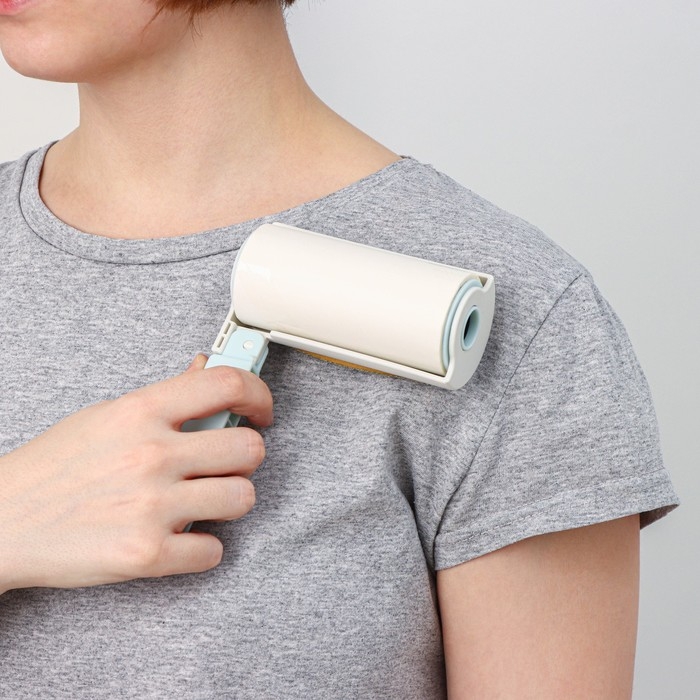 Ролик для одежды с велюровой щёткой, 55 листов, цвет белый с голубым