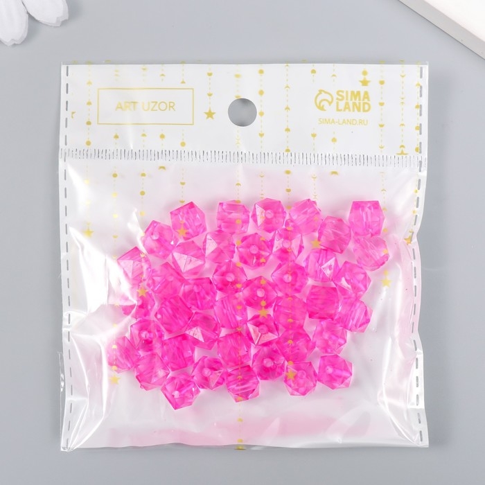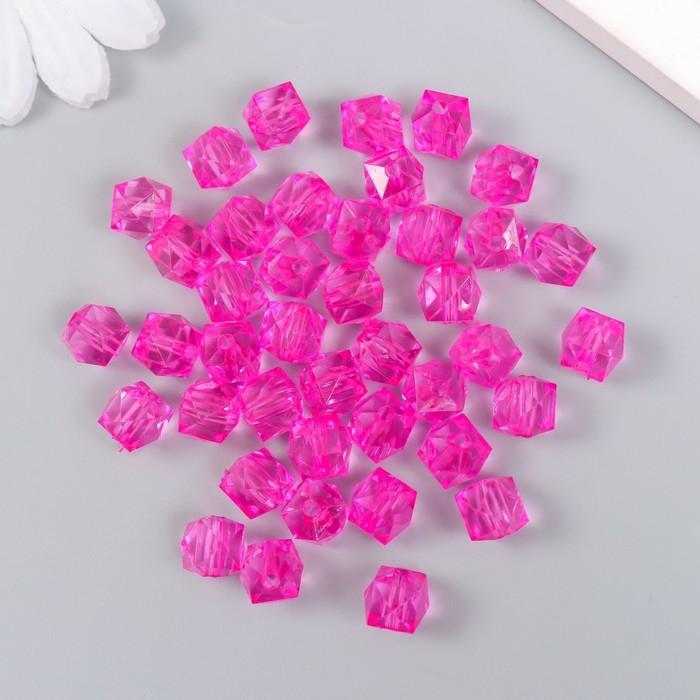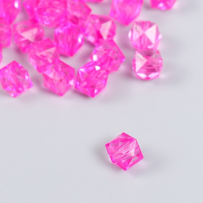Бусины пластик "Кристалл многогранник. Фуксия" прозрачный набор 20 гр 1х1х1 см