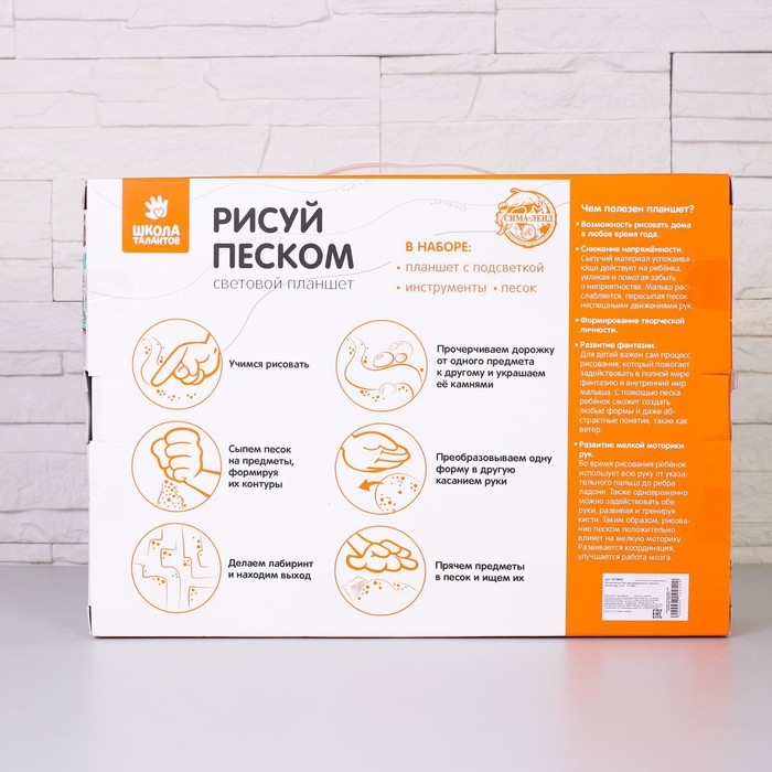 Планшет для рисования песком 35 × 50 см, фанера оргстекло с цветной подсветкой