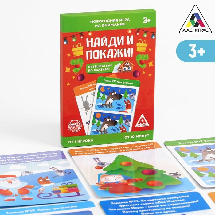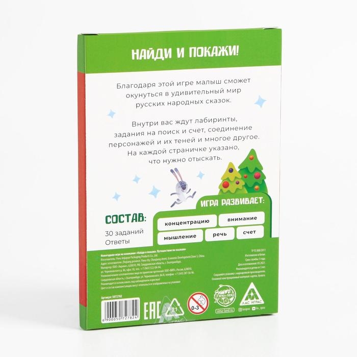 Настольная игра на внимание новогодняя «Найди и покажи. Путешествие по сказкам», на Новый год, 30 заданий