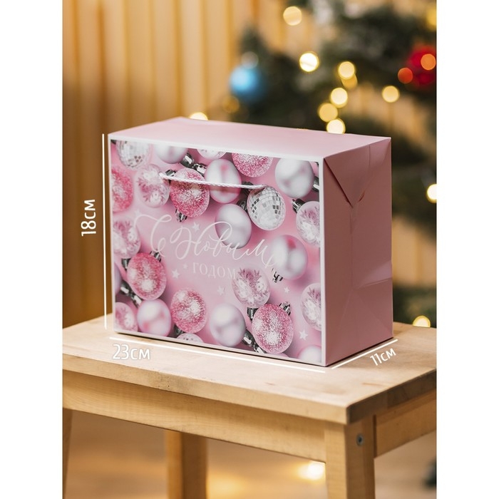 Пакет-коробка «Розовые шары», 23 х 18 х 11 см
