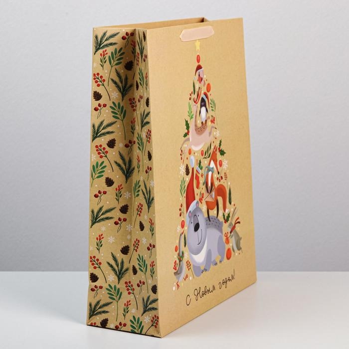 Пакет подарочный новогодний ламинированный «Дружный хоровод», L 31 х 40 х 11.5 см
