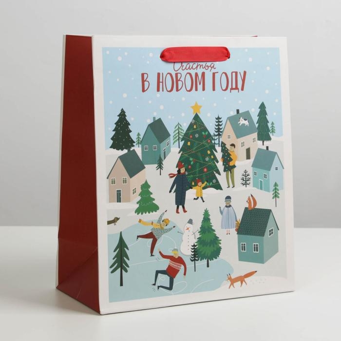 Пакет подарочный новогодний ламинированный «Новогодний город», ML 23 х 27 х 11.5 см