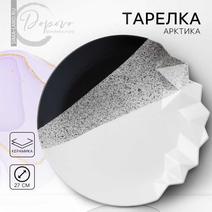 Тарелка керамическая «Снежные горы», 27 см, цвет чёрно-белый