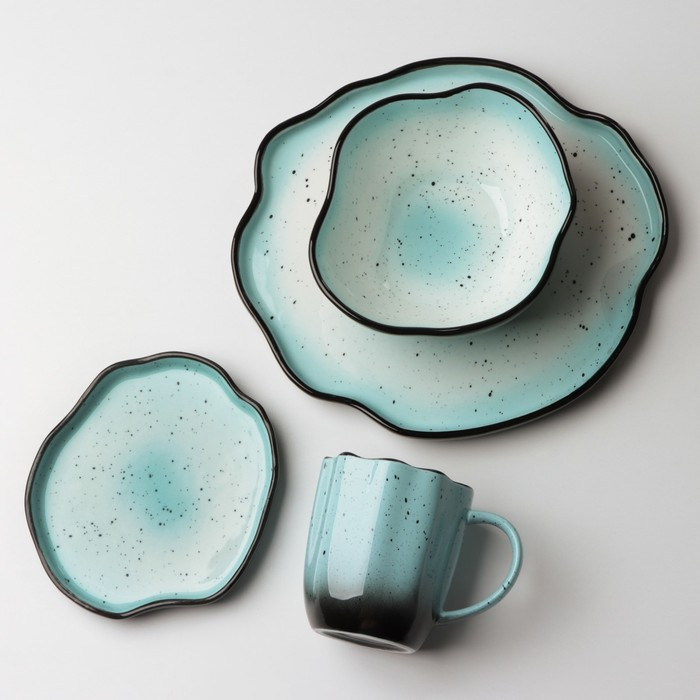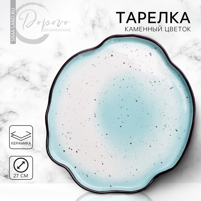 Тарелка керамическая неровный край «Синяя», 27 см, цвет синий