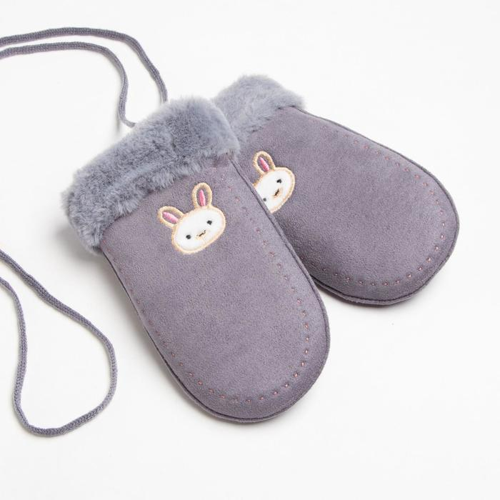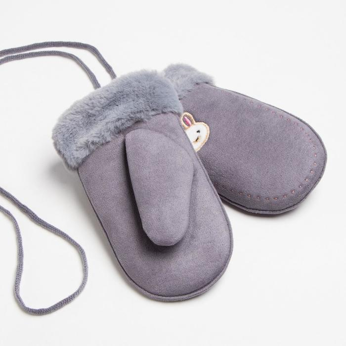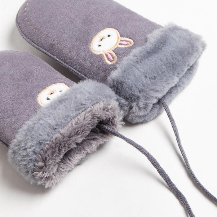 Варежки детские MINAKU с вышивкой, 18 см, цв.серый