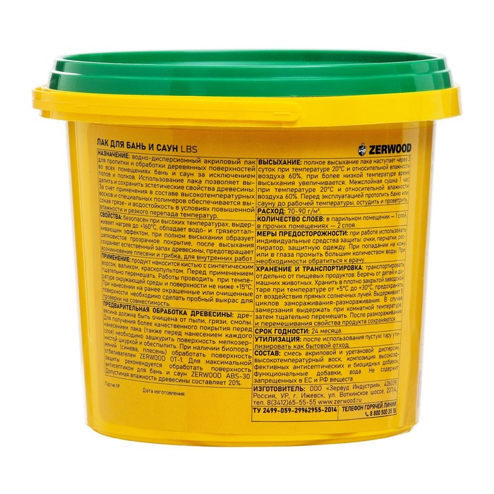 Лак для бань и саун ZERWOOD LBS с воском 0,9кг