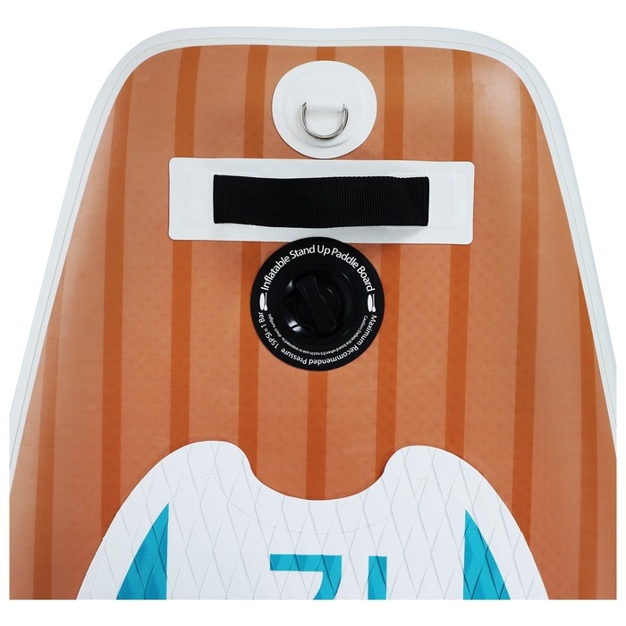 - Запирающийся нажимной клапан с защитой от повреждений обеспечивает герметичность. Кнопочная система помогает без труда приспустить давление в доске, нажав на кнопку в клапане.