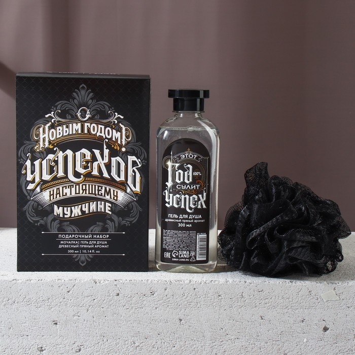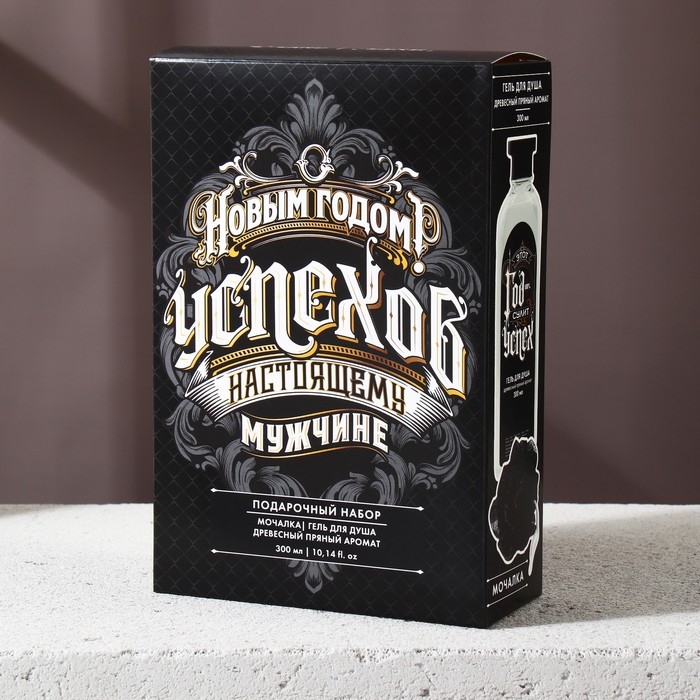Подарочный набор, гель для душа 300 мл и мочалка для тела, Новый Год