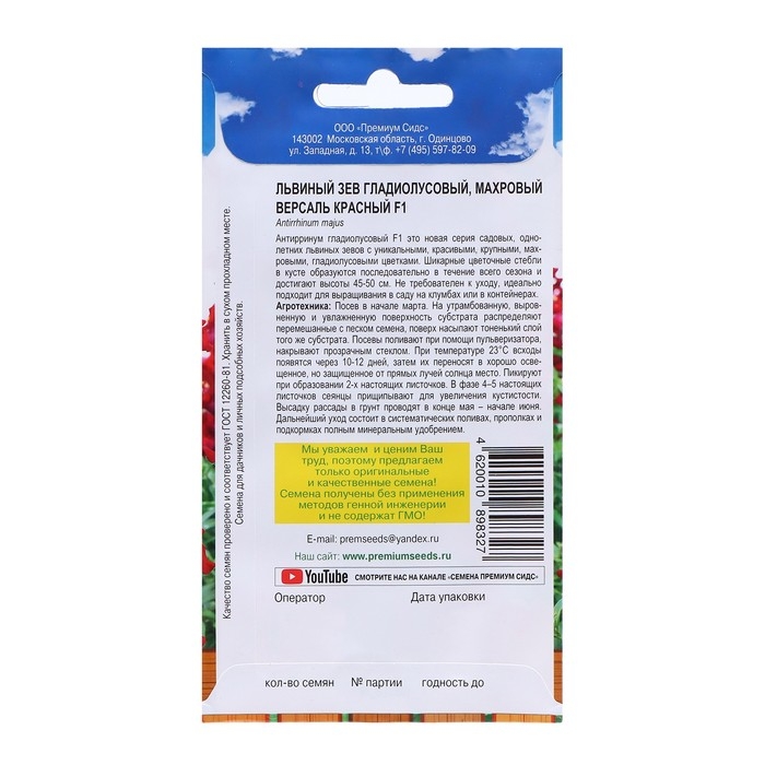 Семена цветов Львиный зев гладиолусовый махровый "Версаль Красный", F1, 5 шт